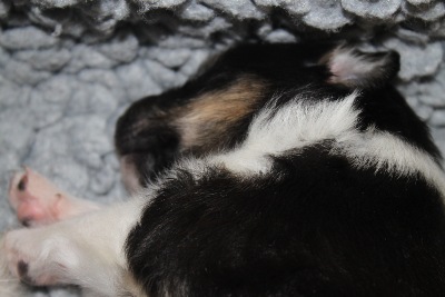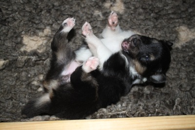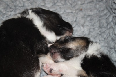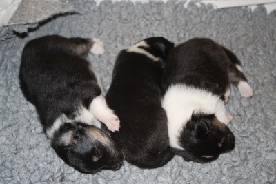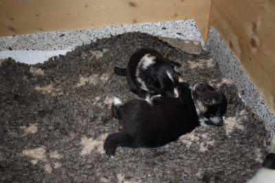 Die Welpen haben sich prächtig entwickelt. Augen und Ohren sind offen, alle haben gut zugenommen. Es sind sehr ruhige und zufriedene Welpen, die uns viel Freude machen.