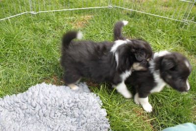 Die Welpen sind jetzt schon bald 8 Wochen alt. Faolan und Fame werden uns in einigen Tagen verlassen, für Flòraidh suchen wir noch das passende Zuhause.