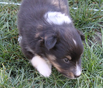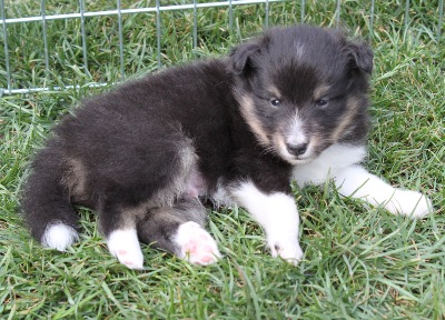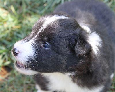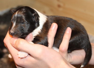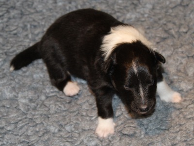 Blackburn hat einen breiten 3/4 Kragen und eine schmale Blässe. Er ist derzeit der Größte im Wurf.