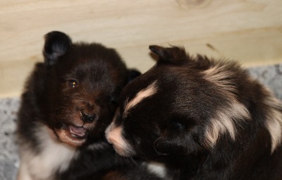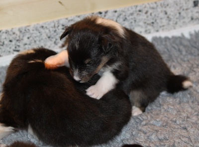 Neues von unseren Welpen.....Sie sind schon drei Wochen alt, die Ohren sind auch geöffnet, und die ersten Zähnchen haben sich blicken lassen. Jetzt geht es rund in der Wurfkiste, und die Spiele werden immer wilder :-)