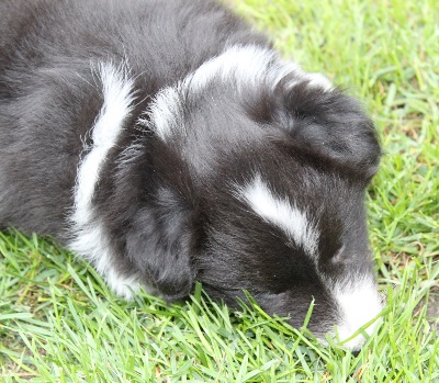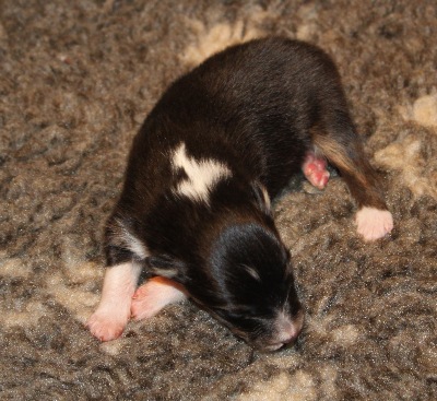 "Scotty" ist der Tricolour-Rüde. Er hat einen ausgeprägten Brand und einen weißen Fleck im Nacken. Er hat so süß geschlafen, dass wir ihn zum Photographieren nicht wecken wollten :-)